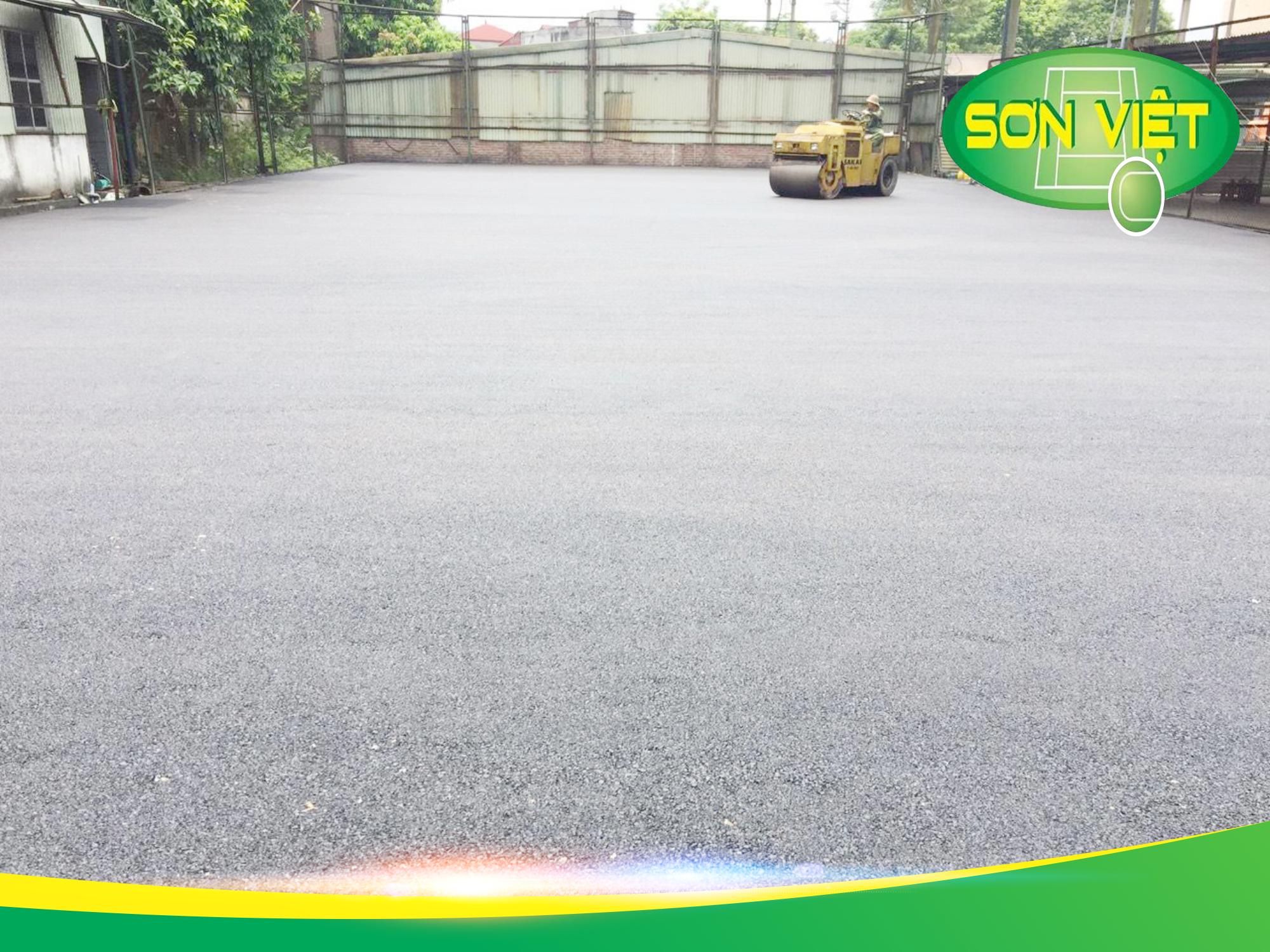 Trải thảm Asphalt nguội trong thi công sân Tennis