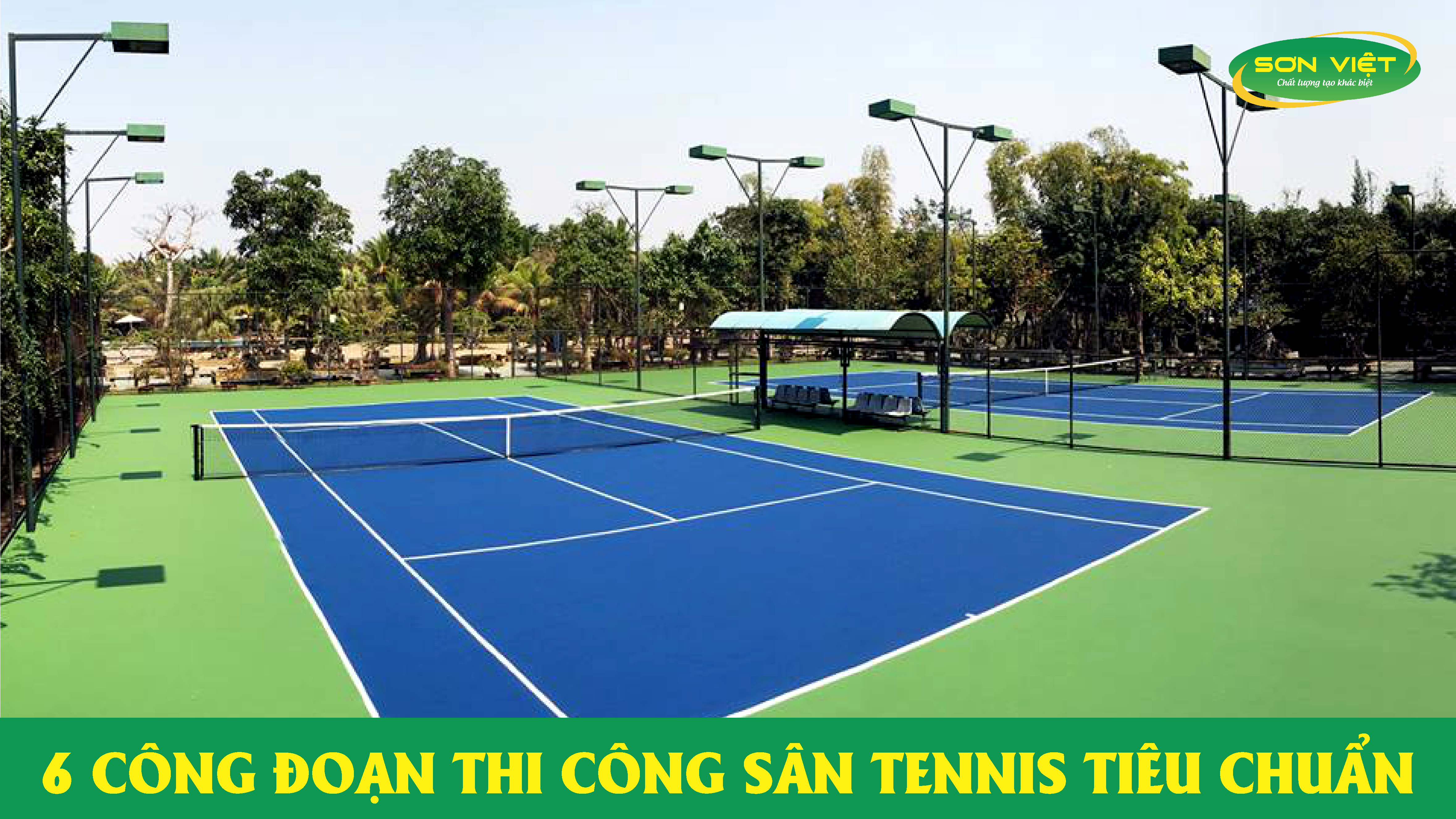 Hầu hết các sân tennis tại Việt Nam hiện nay đều thi công theo dạng mặt sân cứng. Loại sân này thường có kết cấu là nền bê tông xi măng hay bê tông nhựa, mặt sân được phủ nhiều lớp sơn Acrylic để tạo thành bề mặt sân hoàn hảo cho người chơi. Tuy không am hiểu chuyên môn nhưng khách hàng cũng cần biết các công đoạn cần thiết khi thi công sân tennis để giám sát công trình và đánh giá, nghiệm thu thành phẩm. Dưới đây Sơn Việt sẽ giới thiệu 5 công đoạn thi công sân tennis để bạn tham khảo.